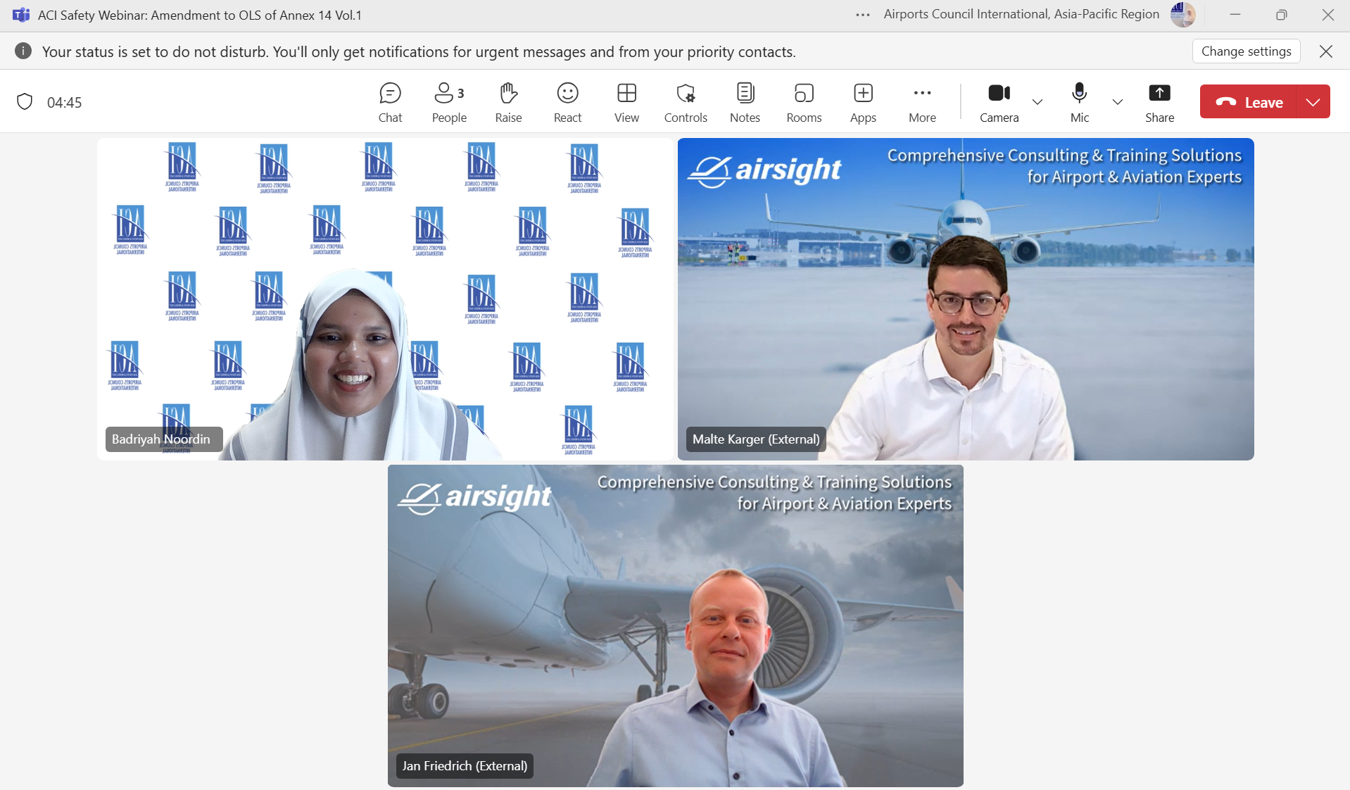 Ms. Badriyah Noordin, Senior Manager, Safety at ACI APAC & MID, and Mr. Malte Karger, Director of Business Development at airsight and member of the ICAO Obstacle Limitation Surface Task Force (OLSTF), led the session. They provided an in-depth look into the upcoming changes to Annex 14, Volume I, including new Aeroplane Design Groups (ADG) and the comprehensive revision of obstacle-free and evaluation surfaces (OFS/OES).