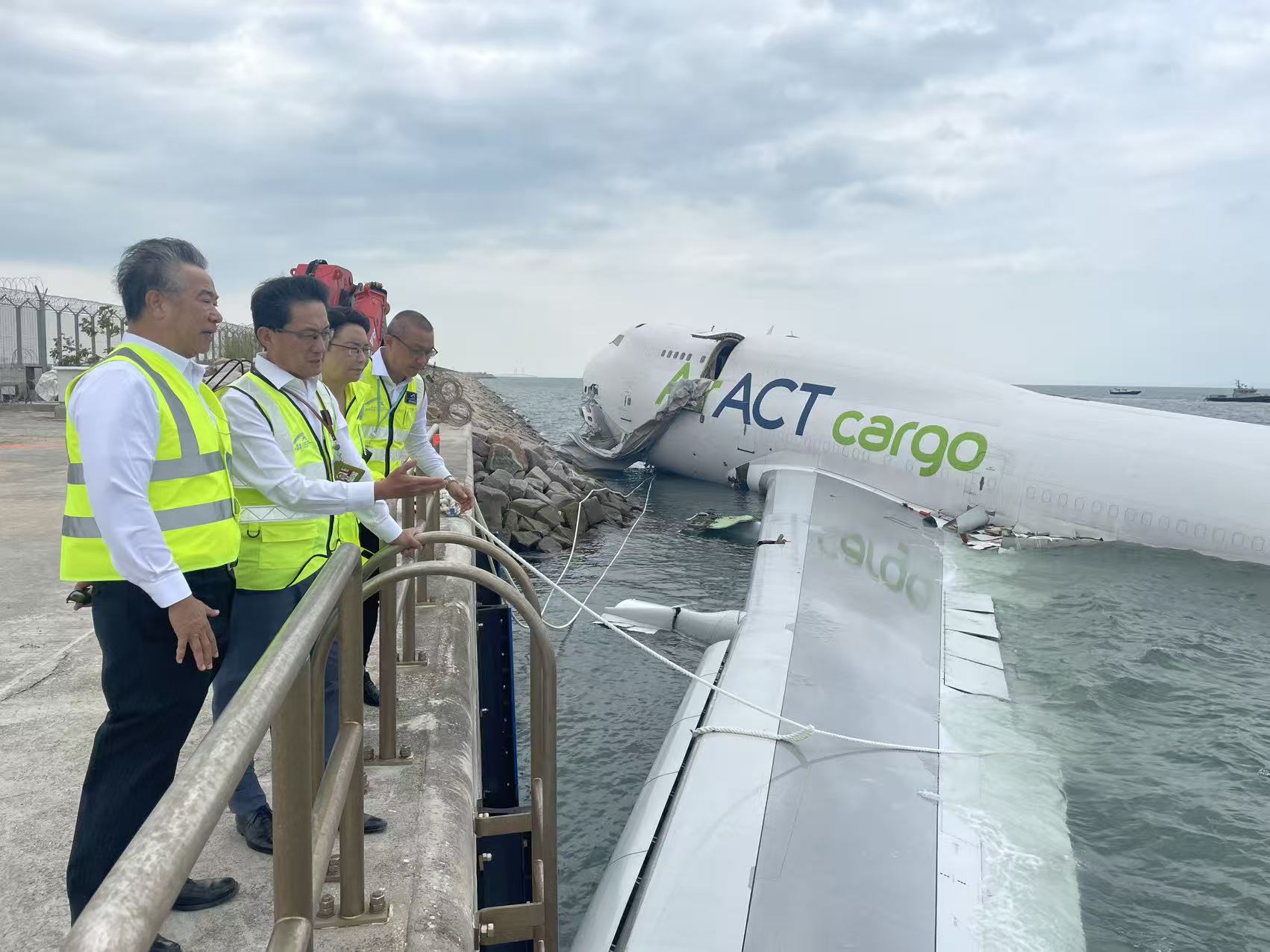 At 0353hrs today, a cargo aircraft flight UAE9788, carrying four crew members, departing from Dubai for Hong Kong, was suspected to have lost control upon landing and veered off the North Runway. The aircraft crashed through the fence into the sea.