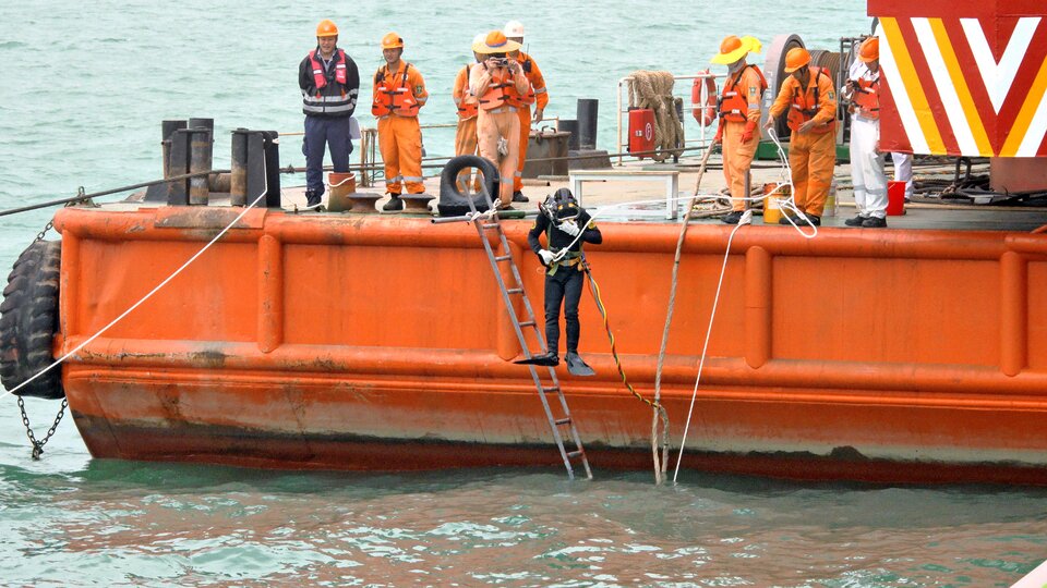The professtional team commissioned by AAHK dispatches divers to conduct and underwater survey
