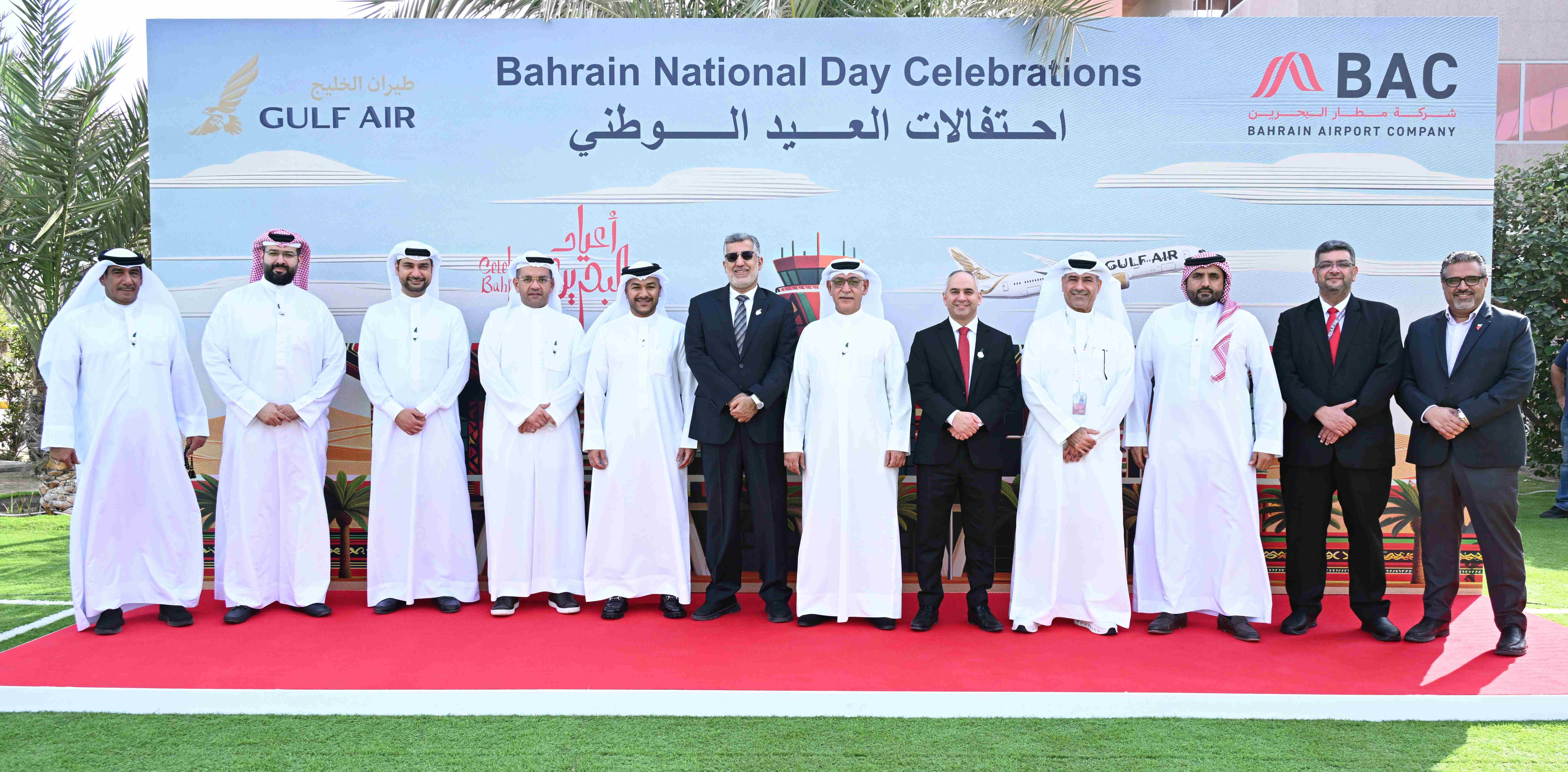 Gulf Air, the national carrier of the Kingdom of Bahrain, and Bahrain Airport Company, the operator and managing body of Bahrain International Airport, hosted a special celebration at Gulf Air headquarters to mark Bahrain National Day, bringing together employees for a festive gathering in honor of the occasion.