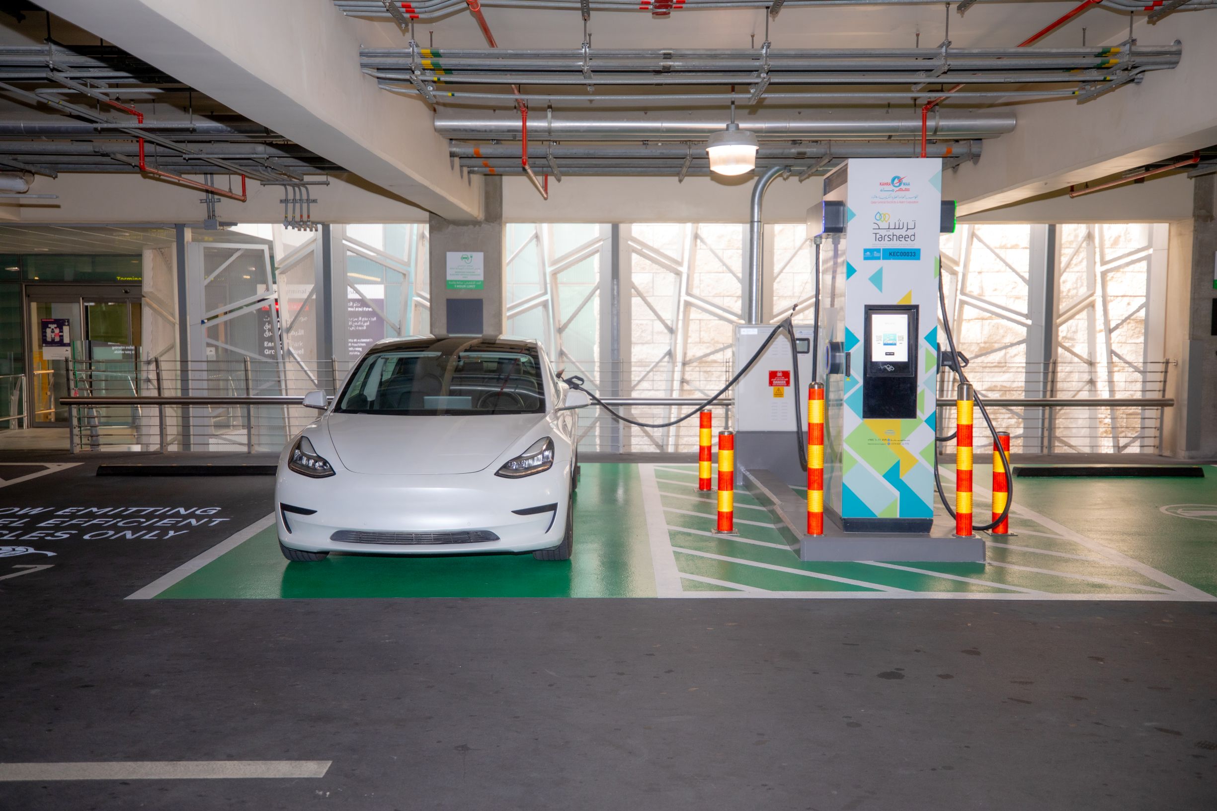 Hamad International Airport (DOH) has collaborated with Qatar General Electricity and Water Corporation “KAHRAMAA” to launch the Electric Vehicle (EV) charging station initiative under the National Program for Conservation and Energy Efficiency, ‘Tarsheed’. This joint effort supports the Qatar National Vision 2030 goal of reducing the country’s carbon emissions by 25%.