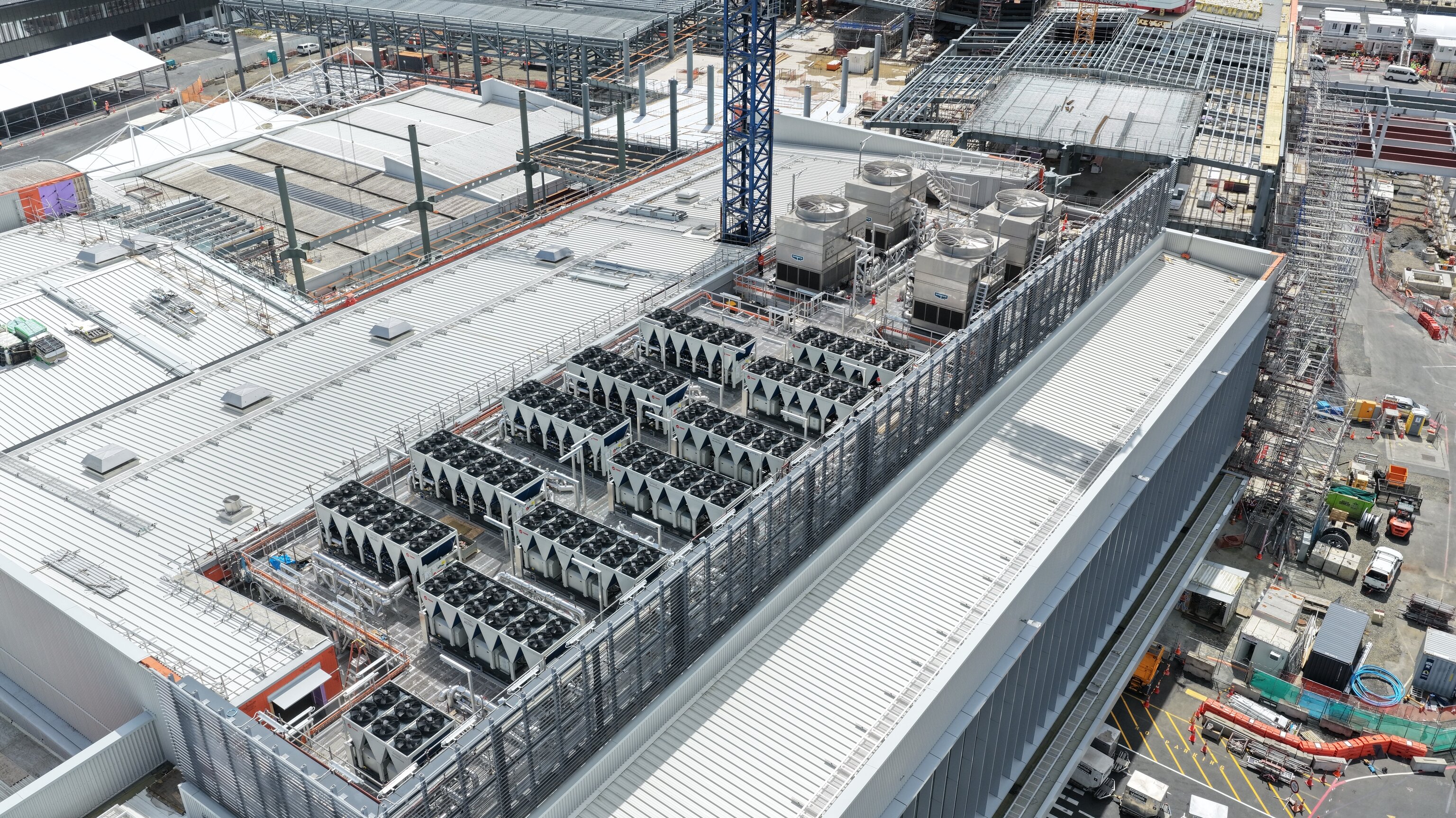 Each unit - roughly the size of a shipping container – delivers up to 600kW of heating or cooling, around 100 times the output of a typical home unit. Together, the heat pumps provide efficient, low emissions climate control across the terminal, from check-in and departures through to airside dwell and biosecurity areas.