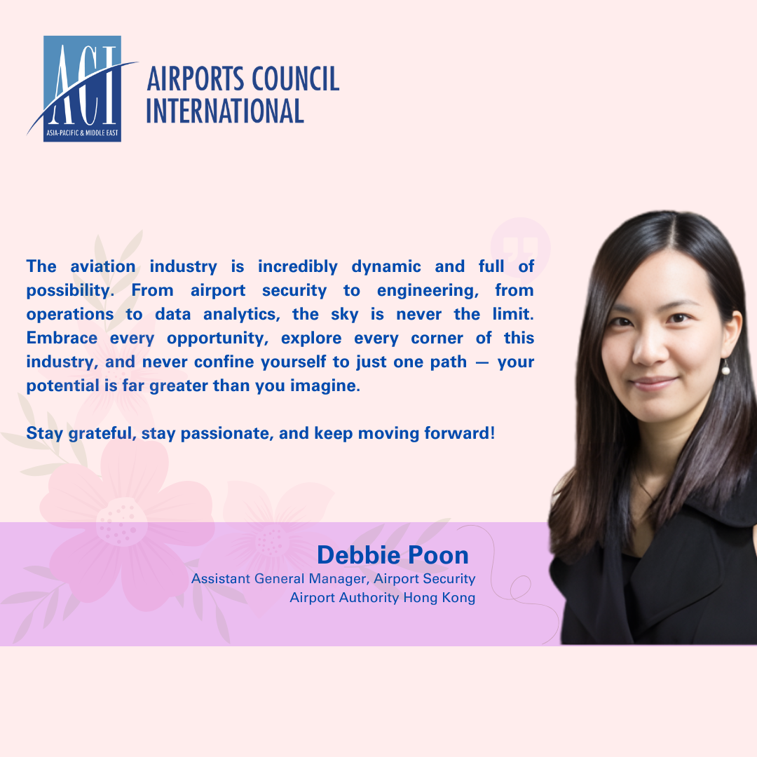 🌸 In aviation security and facilitation, professionals play a critical role in ensuring the safety and smooth operation of airports. Debbie Poon, Assistant General Manager, Airport Security at Airport Authority Hong Kong and a member of the ACI Asia-Pacific & Middle East Regional Aviation Security Committee, shares her perspective: