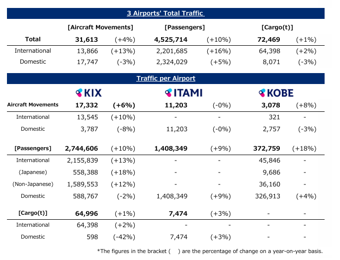 KIX / ITAMI / KOBE Traffic Report for September 2025