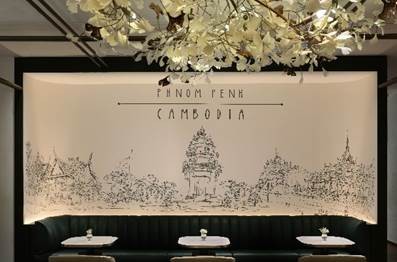 Also featured is art by renowned artist and sustainability advocate Bill Bensley, whose work captures the heart of the “sense of place” showcasing the spirit of Cambodian creativity and elegance. Every detail in the lounge, from striking decorative elements to carefully curated artwork, is woven into the setting to offer an immersive, evocative environment—ensuring guests are surrounded by comfort, artistry, and the unmistakable character of the local culture.