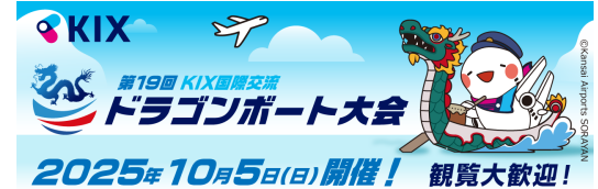 Kansai Airports is thrilled to announce the 19th KIX International Friendship Dragon Boat Festival on 5 October 2025, organized by the KIX Dragon Boat Competition Executive Committee (consisting of the Japan Dragon Boat Association, the Wakayama Dragon Boat Association, and Kansai Airports).